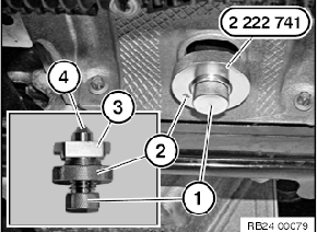 Spezialwerkzeug 24 1 370 mit dem Formstück (3) in die Aussparung einsetzen.